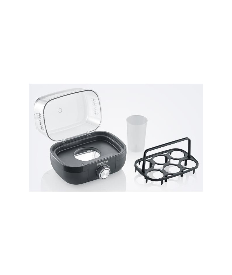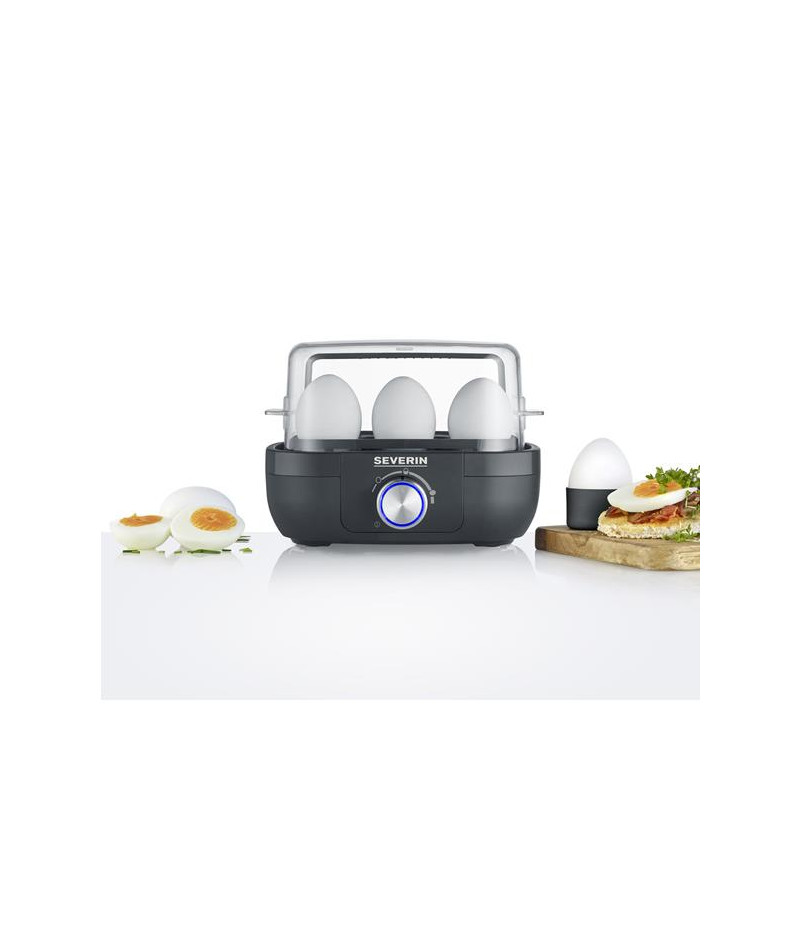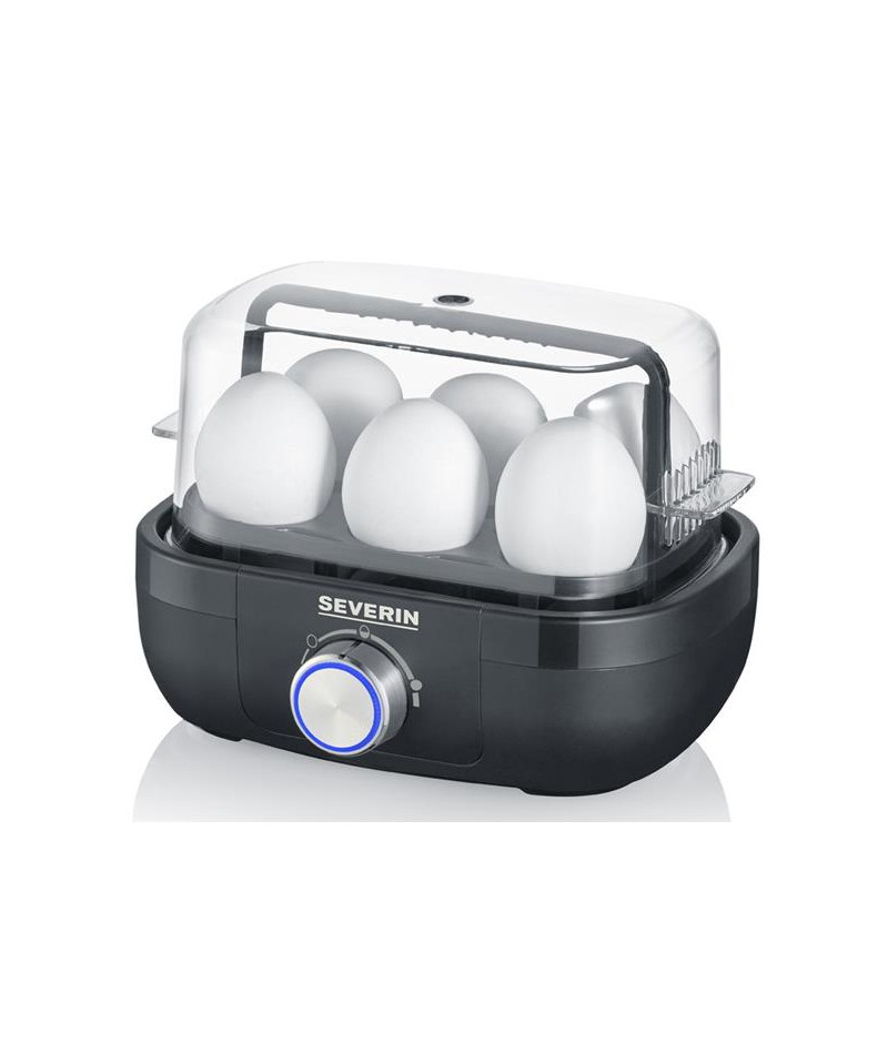 Cuiseur à œufs Noir - Capacité de 1 à 6 œufs - Des œufs cuits à la seconde près grâce à une cuisson réglable ! - Commande électronique de la durée de cuisson (coque, mollet ou dur) - Couvercle transparent rabattable et amovible pour un nettoyage facile - Signal sonore fin de cuisson - Gobelet doseur avec perce-œufs - Interrupteur marche-arrêt avec voyant lumineux LED - Sécurité contre la surchauffe - Puissance 420 W - Coloris noir - Garantie 2 ans.