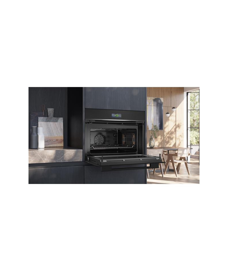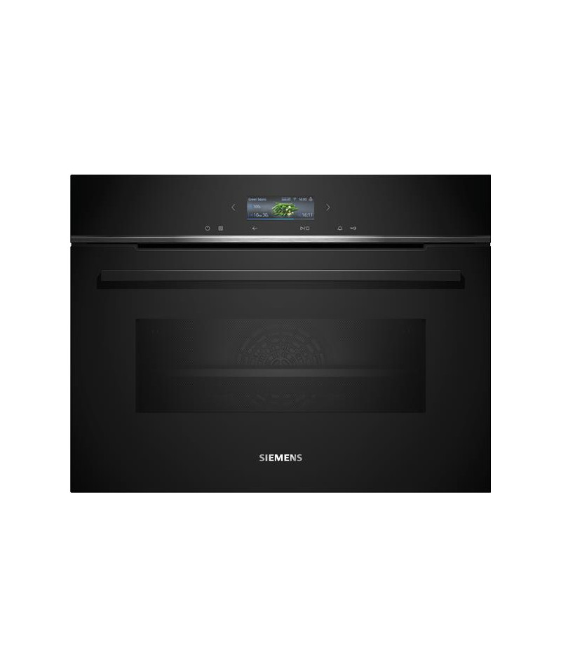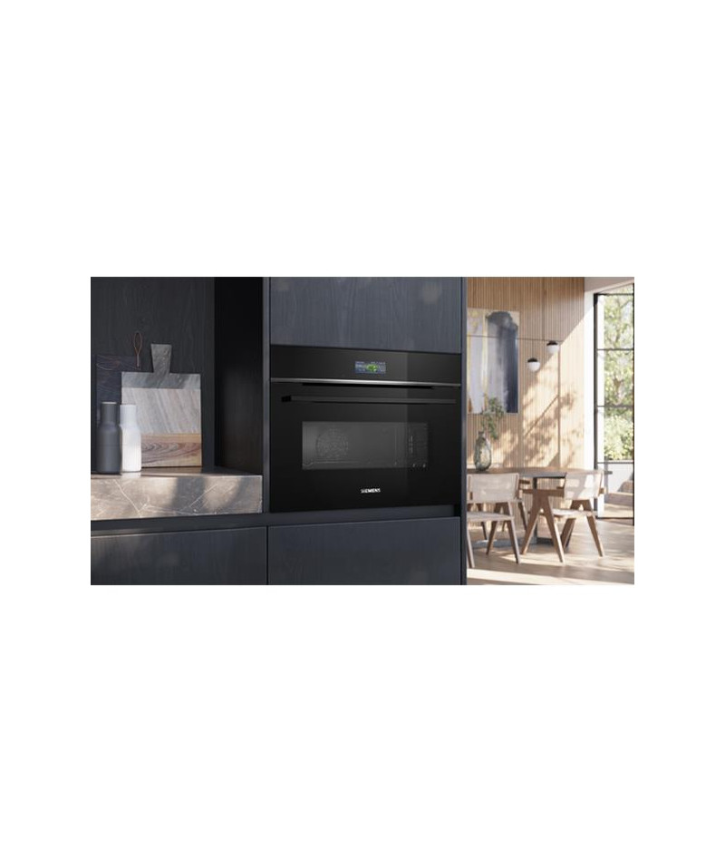 Four compact combiné tout intégrable : Micro-ondes gril + chaleur tournante - Ligne iQ700 - 5 niveaux de puissance - Ecran TFT couleur sensitif : navigation tactile pour une utilisation intuitive - Commandes TouchControl - Technologie Inverter : puissance micro-ondes régulée pour chauffer les aliments progressivement - 15 modes de cuisson dont Air pulsé 2D et gril air pulsé + micro-ondes - Cuisson douce : économise de l'énergie pendant la cuisson et le rôtissage - Préchauffage Booster - CookAssist : recettes préprogrammées - Préconisation de température - Affichage de la température - Contrôle optique de la montée en température - Home Connect : pilotage et contrôle de votre four à distance - Assistant à commande vocale - HumidClean Plus : pour un nettoyage rapide, la saleté est préalablement ramollie par la vaporisation d'eau savonneuse. Elle peut alors être enlevée plus facilement - Eclairage LED - Porte abattante 3 vitres avec Soft Open et Soft Close - Ventilateur de refroidissement - Livré avec 1 grille et 1 lèchefrite - Sécurité enfants.