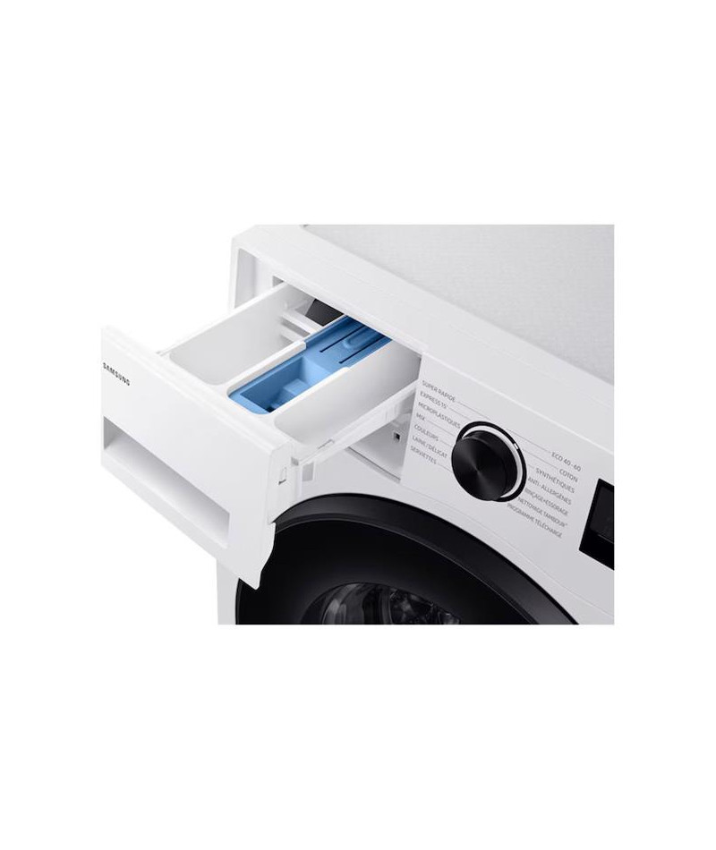 Lave-linge frontal Samsung WW10FG5U34AE - Avec sa capacité de 10 kg et sa vitesse d’essorage de 1400 tours par minute, ce lave-linge offre un lavage performant et adapté aux foyers exigeants - Il propose une large sélection de programmes, dont un cycle vapeur anti-allergènes pour éliminer jusqu’à 99,9 % des bactéries et acariens, et un programme Microplastiques conçu avec Patagonia pour réduire de 54 % les rejets dans l’eau - Ses options intelligentes incluent le mode AI Energy pour diminuer jusqu’à 70 % la consommation d’énergie grâce à la technologie ecobubble™, et la connectivité SmartThings pour piloter votre linge à distance via votre smartphone - La fonction AI ecobubble™ dissout la lessive plus efficacement grâce à l’injection d’air, garantissant un lavage en profondeur même à basse température - Son moteur Digital Inverter à induction, garanti 20 ans, assure silence, fiabilité et économie d’énergie - Le tambour généreux accueille facilement les charges familiales tout en ménageant les fibres textiles - Sécurité enfant et arrêt automatique viennent compléter l’ensemble pour un usage quotidien en toute sérénité - Design blanc élégant, dimensions compactes de 85 x 60 x 55 cm, pour une intégration parfaite dans tout espace.