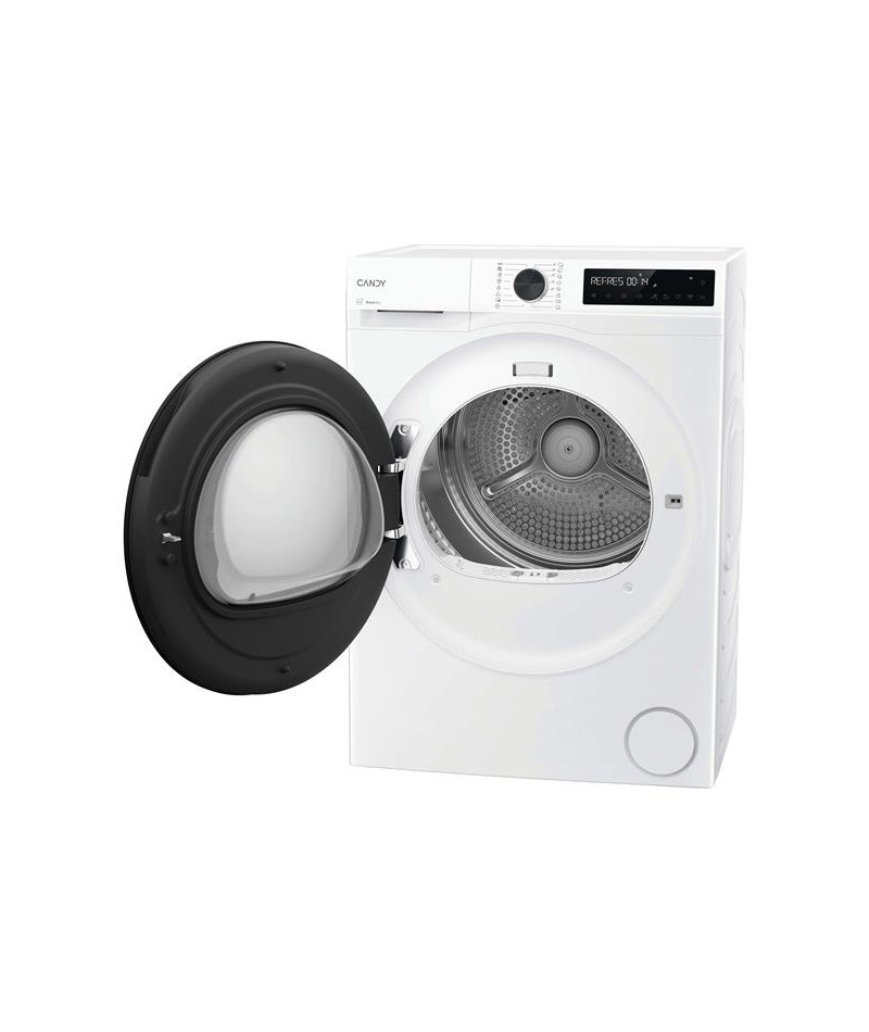 Sèche-linge pompe à chaleur Candy BR 9N2BX-S - Avec une capacité de 9 kg et un séchage électronique, ce modèle répond aux besoins des foyers qui recherchent performance et praticité - Ses 16 programmes couvrent toutes les situations du quotidien comme les chemises, la laine, les textiles délicats, les jeans ou encore le cycle Hygiène qui élimine plus de 99 % des bactéries - Grâce à l’application hOn, accédez en Wi-Fi et Bluetooth à plus de 40 programmes additionnels, recevez des alertes de fin de cycle et pilotez l’appareil à la voix - Le sèche-linge propose aussi des options utiles telles que le départ différé, le degré de séchage ajustable, un cycle rapide pour petites charges et la fonction anti-froissage pour simplifier le repassage - La technologie Smart AI Move réduit jusqu’à 90 % les emmêlements pour un séchage homogène - Son tambour inox de 118 L protège efficacement vos textiles tout en offrant une grande capacité - Les sécurités incluent la sécurité de porte, l’indicateur de bac plein, le contrôle d’humidité et les alertes d’entretien - Avec son niveau sonore limité à 62 dB et son programmateur Digit 6D à affichage clair, l’utilisation est intuitive et agréable - Enfin, son design blanc moderne avec hublot noir et ses dimensions standards (85 x 59,5 x 63,5 cm) permettent une intégration facile.