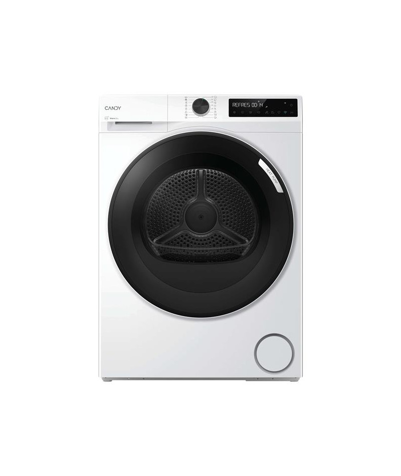 Sèche-linge pompe à chaleur Candy BR 10N2BX-S - Avec une capacité de 10 kg et un séchage électronique précis, cet appareil est conçu pour traiter efficacement toutes vos lessives - Il propose 16 programmes dont des cycles adaptés aux chemises, aux tissus délicats, à la laine ou encore un cycle Hygiène qui élimine plus de 99 % des bactéries - En complément, l’application hOn permet d’accéder à plus de 40 programmes additionnels, de recevoir des notifications de fin de cycle et même de piloter l’appareil à la voix - Les options incluent l’anti-froissage pour limiter le repassage, le départ différé, la sélection du degré de séchage et un cycle rapide pour petites charges - La technologie Smart AI Move réduit jusqu’à 90 % les emmêlements pour un linge plus homogène - Son tambour inox de 120 L préserve la qualité des textiles et assure une grande longévité - Des sécurités pratiques sont intégrées comme l’indicateur de bac plein, le contrôle d’humidité, la sécurité porte et les alertes d’entretien - Avec son programmateur Digit 6D, son affichage du temps restant et un niveau sonore de 62 dB, l’utilisation reste simple et confortable - Enfin, son design blanc avec hublot noir et ses dimensions standards (85 x 59,5 x 63,5 cm) s’intègrent facilement dans toutes les buanderies.