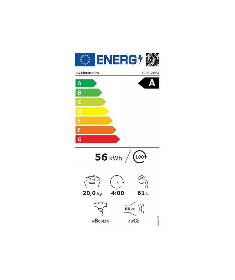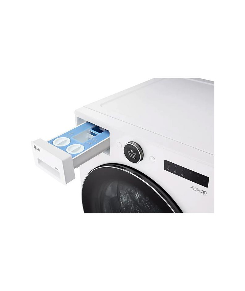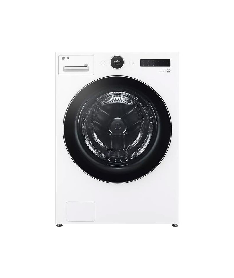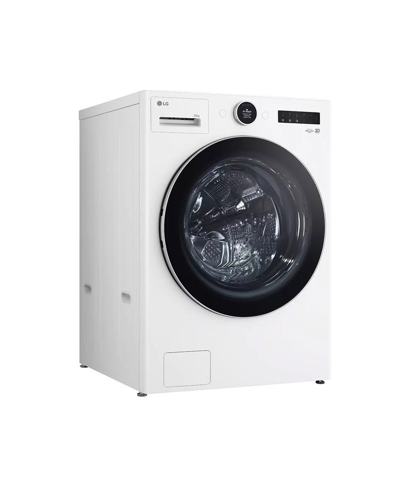 Lave-linge frontal LG F20F12WST - Avec une capacité exceptionnelle de 20 kg et une vitesse d’essorage maximale de 1000 tr/min, il est conçu pour les foyers les plus exigeants - Il propose un large choix de programmes dont Coton, Eco 40-60, Mix, Duvet, Hygiène, Soin bébé, Textiles de sport, Lavage silencieux, Anti-allergie et Laine/à la main, auxquels s’ajoutent des cycles spécialisés comme le Nettoyage de la cuve ou le programme téléchargeable via l’application - Les options incluent la vapeur Steam, le lavage rapide TurboWash 360°, le pré-lavage, la fin différée de 3 à 19 h, l’ajout de linge en cours de cycle ainsi qu’un verrouillage enfant pour plus de sérénité - Côté confort, ce modèle intègre la connectivité LG ThinQ qui permet un démarrage à distance, le suivi de consommation, le téléchargement de programmes et la fonction Smart Diagnosis pour un entretien facilité - Son moteur AI Direct Drive à induction détecte intelligemment le type de textile et adapte les mouvements du tambour 6 Motion Direct Drive pour un soin optimisé - Le tambour en inox de 142 litres, associé à un hublot en verre trempé de 30 cm, garantit robustesse et hygiène durable - Sécurité enfants, redémarrage automatique, détection de charge, antibalourd et signal de fin de cycle complètent ses protections - Avec un design blanc brillant rehaussé d’une molette argentée et d’un affichage digital LCD + LED, ses dimensions de 99 x 70 x 83 cm en font un appareil spacieux et moderne.