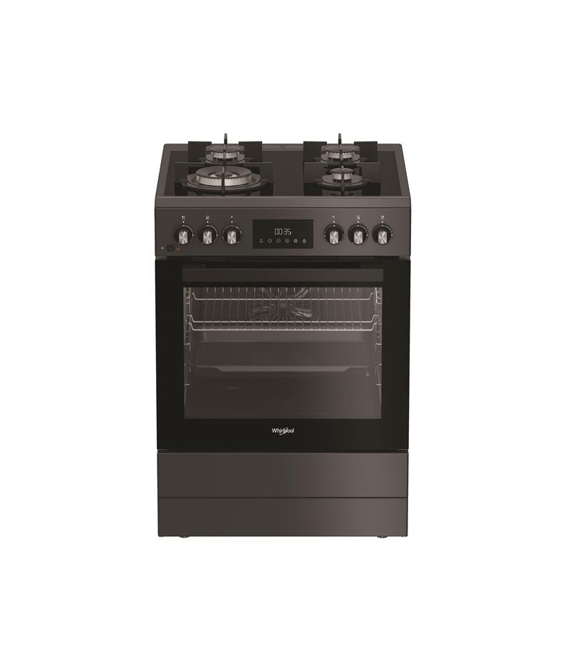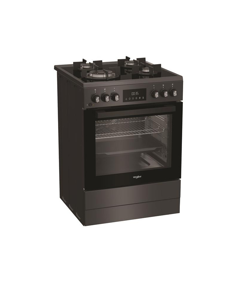 Cuisinière gaz Whirlpool W6G8LCSWA - Avec sa finition anthracite contemporaine et son dessus en verre élégant, cette cuisinière gaz 60 cm combine style et performance au quotidien - Sa table de cuisson accueille 4 foyers gaz bien dimensionnés, dont un brûleur ultra-rapide de 3300 W à l’avant gauche pour les cuissons vives - Le four gaz multifonction de 72 L bénéficie de la chaleur tournante pour une diffusion optimale et propose 9 programmes, incluant une touche vapeur idéale pour préserver le moelleux et la saveur des plats - Les parois catalytiques assurent un nettoyage automatique en absorbant les graisses pendant la cuisson - Doté d’un thermostat mécanique fiable, ce four est également équipé d’un minuteur électronique pour une gestion précise du temps de cuisson - Autres atouts : porte 3 vitres à fermeture douce, tiroir de rangement bas, injecteurs G30 fournis pour butane/propane et câble monophasé inclus.