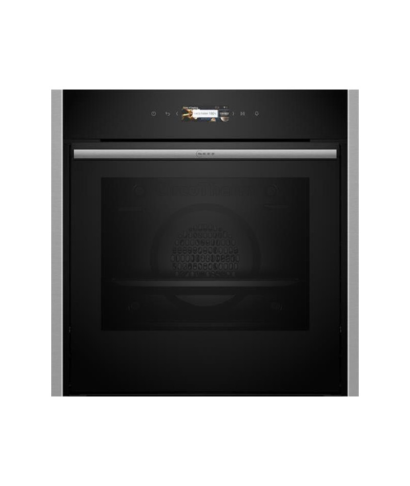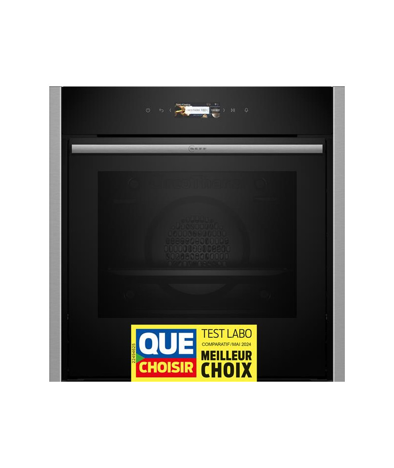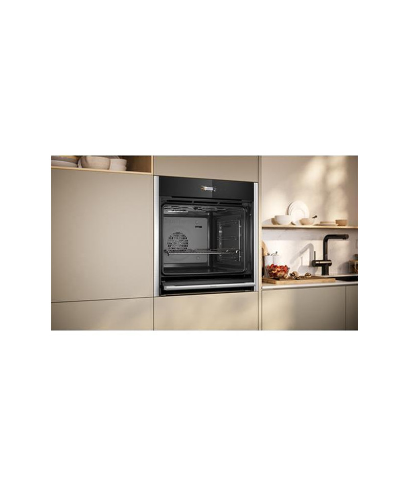 Four EcoClean avec porte escamotable - Ligne N70 - Ecran TFT 3,7'' couleur tactile - 14 modes de cuisson dont Cuisson Basse température et Circotherm® : répartition uniforme de la chaleur jusqu'à trois niveaux - Cuisson douce : économise de l'énergie pendant la cuisson et le rôtissage - Hot Air 3D : une répartition homogène de la chaleur pour des cuissons absolument parfaites, sur trois niveaux - Préchauffage rapide - Assistant Cuisson : large choix de recettes - Préconisation de température - Affichage de la température - Contrôle optique de la montée en température - Home Connect : pilotage et contrôle de votre four à distance - Assistant à commande vocale - Nettoyage EcoClean paroi arrière + Hydrolyse - Eclairage halogène - Porte 3 vitres escamotable Slide & Hide : une porte facile à manipuler qui disparaît sous le four - Ventilateur de refroidissement - Sécurité enfants - Finition inox.
