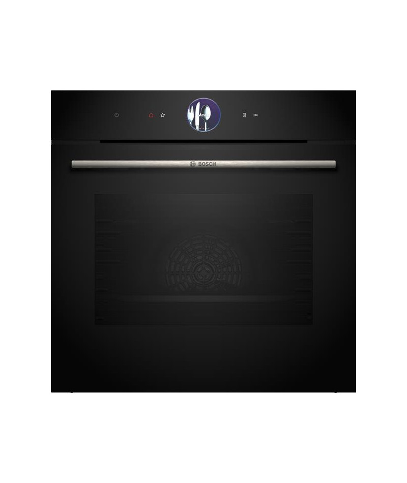 Four pyrolyse - Ligne Série 8 - Ecran TFT Plus couleur sensitif - Anneau de contrôle digital : ajustez intuitivement les réglages de votre four directement sur le bandeau de commande en utilisant simplement votre index. Déplacez simplement votre doigt sur l'anneau gravé sur le bandeau de commande et confirmez le réglage souhaité du bout du doigt - Commandes TouchControl - 14 modes de cuisson dont Pizza et Basse température - Fonction Arrêt automatique : grâce à des capteurs, la cuisson s’arrête automatiquement dès que le plat est cuit - Fonction Air Fry : pour une friture parfaite de vos aliments, comme les légumes et les pommes de terre (lèchefrite perforée Air Fry HEZ629070 proposée en option) - PerfectRoast plus : sonde de cuisson 3 points - PerfectBake plus : capteur mesurant le taux d'oxygène à l'intérieur du four, pour pains et pâtisseries - Cuisson douce : économise de l'énergie pendant la cuisson et le rôtissage - Hot Air 4D : la nouvelle turbine dont la rotation se fait alternativement vers la droite puis vers la gauche permet une cuisson sur 4 niveaux sans mélange d’odeurs, et sans préconisation de hauteur de gradins - Préchauffage Booster : chauffe facile et rapide - CookAssist : recettes préprogrammées - Préconisation de température - Affichage de la température - Contrôle optique de la montée en température - Home Connect : pilotage et contrôle de votre four à distance - Assistant à commande vocale - Nettoyage Hydrolyse + Pyrolyse - Eclairage LED - Porte froide - Contre-porte plein verre - Fermeture douce de la porte SoftMove - Ventilateur de refroidissement - Sécurité enfants.