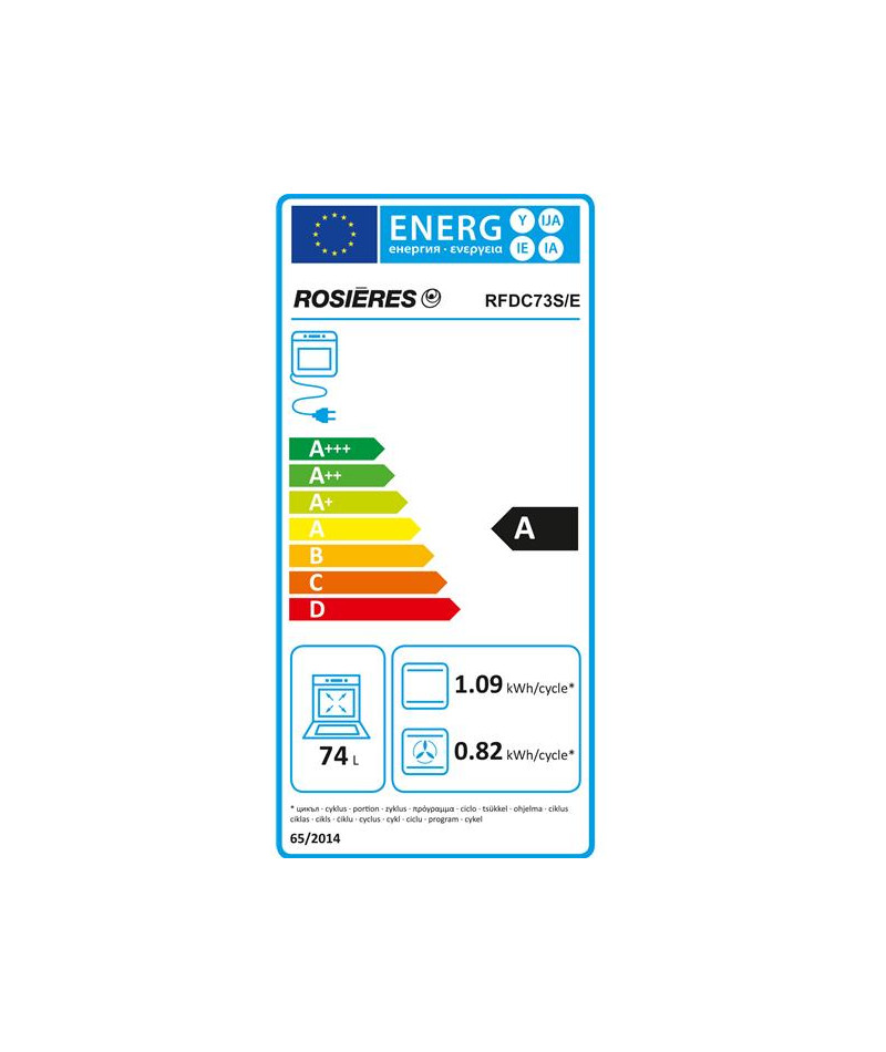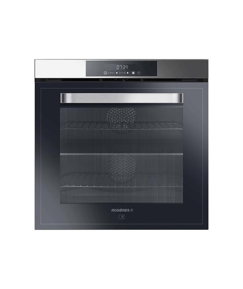 Four pyrolyse Rosières RFDC73S/E Origine Inox - Ce four encastrable séduit par son design élégant et son efficacité redoutable - Doté d’un bandeau de commande Full Touch 100 % tactile, il permet une utilisation simple et intuitive pour un confort d’usage au quotidien - Avec sa double cavité et ses deux turbines, vous pouvez cuire simultanément deux plats différents sans mélange d’odeurs, avec un écart de température pouvant aller jusqu’à 80°C - Il propose 7 fonctions de cuisson, dont la chaleur pulsée et la convection naturelle, pour des résultats homogènes et rapides - La pyrolyse détruit automatiquement graisses et sucres à plus de 400°C pour un nettoyage sans effort - Ce modèle offre un équipement complet avec éclairage halogène, porte froide 4 vitres, gradins anti-basculement et ventilation de refroidissement - Il est livré avec deux grilles et une lèchefrite - Électronique, précis et économe, il bénéficie d’une classe énergétique A, idéale pour une consommation maîtrisée - Le Rosières RFDC73S/E allie technologie et praticité pour cuisiner comme un chef à la maison.