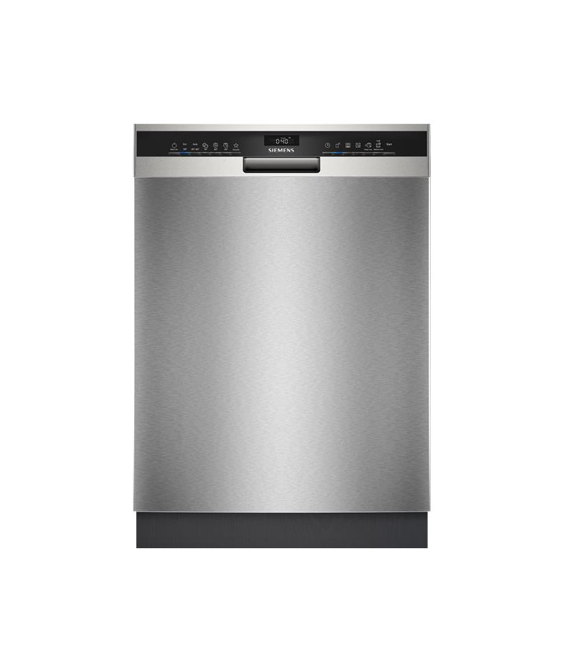 Lave-vaisselle sous plan Siemens SN43HI01MS iQ300 60 cm - Ce modèle associe performance et confort avec un design inox anti-traces moderne et élégant - Avec ses 6 programmes dont Eco 50 °C pour réduire la consommation, Auto 45-65 °C pour un lavage intelligent et Intensif 70 °C pour les salissures tenaces, il s’adapte à toutes vos utilisations - Ses options comme varioSpeed Plus pour un cycle jusqu’à trois fois plus rapide, Zone Intensive pour les plats très encrassés ou Demi-charge pour économiser eau et énergie renforcent sa polyvalence - Grâce à Home Connect, vous contrôlez et personnalisez vos lavages depuis votre smartphone ou par commande vocale - Le départ différé jusqu’à 24 h et l’affichage du temps restant apportent une organisation facilitée - Les paniers varioFlex modulables, le système rackMatic réglable sur 3 niveaux et le tiroir à couverts offrent une flexibilité optimale - La cuve inox assure une hygiène durable et le moteur iQdrive garantit fiabilité et silence avec seulement 42 dB - Les sécurités incluent aquaStop à vie contre les fuites, un échangeur thermique pour protéger la vaisselle délicate et une sécurité enfants - Avec son coloris acier brossé anti-traces, ce lave-vaisselle s’intègre harmonieusement dans toutes les cuisines.