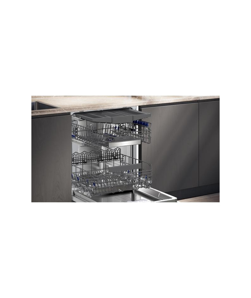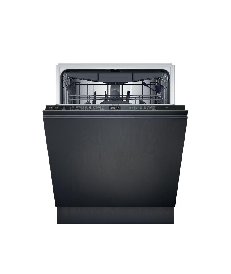 Lave-vaisselle tout intégrable Siemens SX75EX13CE iQ500 60 cm Hauteur XXL avec porte à glissières - Ce modèle haut de gamme offre un lavage performant et économe avec une efficacité énergétique de classe A - Il accueille jusqu’à 14 couverts et propose 8 programmes dont Eco 50 °C pour un lavage économe, Auto 45-65 °C qui ajuste automatiquement les paramètres, Intensif 70 °C pour les plats très sales, Verre 40 °C pour les articles fragiles, Quotidien 60 °C, Silence 50 °C, Rapide 45 °C et un programme Favourite personnalisable - Les options incluent varioSpeed Plus pour un lavage jusqu’à trois fois plus rapide, Zone Intensive pour un lavage ciblé, Demi-charge pour plus de flexibilité et Home Connect pour piloter et diagnostiquer l’appareil à distance - Le séchage autoOpen Dry et l’échangeur thermique garantissent un résultat parfait tout en réduisant la consommation - La porte à glissières facilite l’intégration dans les cuisines avec plinthe basse, tandis que l’éclairage latéral sideLight bleu indique le fonctionnement - Les paniers flexComfort offrent un rangement optimisé avec panier supérieur RackMatic, supports à tasses en silicone, picots rabattables et tiroir à couverts dédié - La glassZone, située dans le panier inférieur, nettoie en douceur les verres fragiles grâce à ses 6 buses rotatives - La cuve inox assure durabilité et hygiène - Le moteur iQdrive assure performance et silence à seulement 42 dB (41 dB en mode Silence) - Les sécurités comprennent aquaStop avec garantie à vie, aquaSensor, protectVerre et triple filtre autonettoyant - Cet appareil est intégrable : Il est livré sans habillage ni porte décorative, afin de vous permettre de l’assortir au mobilier et à la couleur de votre cuisine.