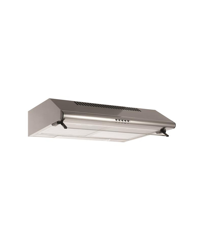 Hotte casquette Glemgas GHC620SS - Cette hotte compacte de 60 cm s’intègre facilement dans les petites cuisines tout en assurant une aspiration efficace - Dotée de 3 vitesses réglables via des boutons poussoirs, elle s’adapte aux besoins de cuisson et reste silencieuse grâce à son moteur DC innovant - Son installation est possible en évacuation ou en recyclage, avec clapet anti-retour fourni - Elle est équipée de deux filtres à graisse métalliques lavables au lave-vaisselle et livrée avec deux filtres à charbon actif CR890 pour une utilisation immédiate - Son éclairage LED double ampoule offre un confort optimal et une luminosité homogène sur le plan de travail - Son conduit d’évacuation est prévu pour un diamètre de 120 mm - Réalisée en inox, cette hotte au design discret et fonctionnel s’accorde facilement à tous les styles de cuisine.